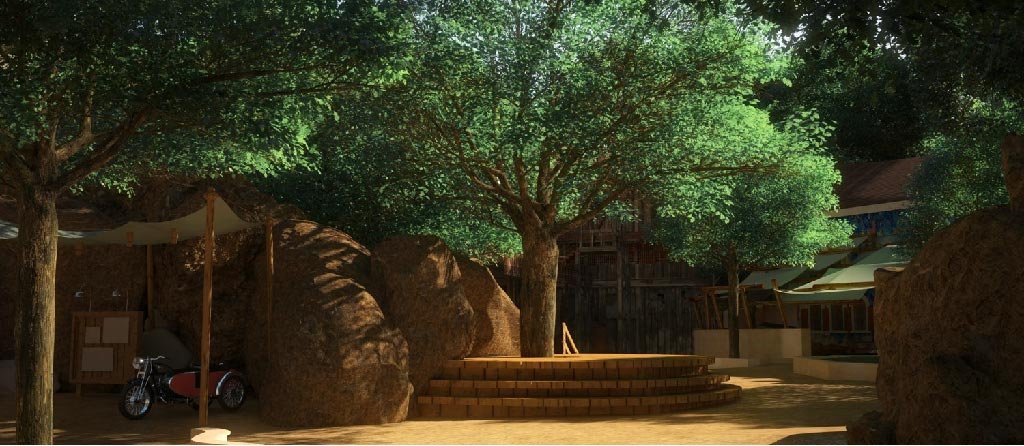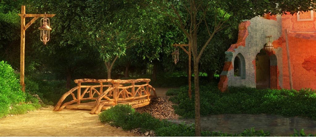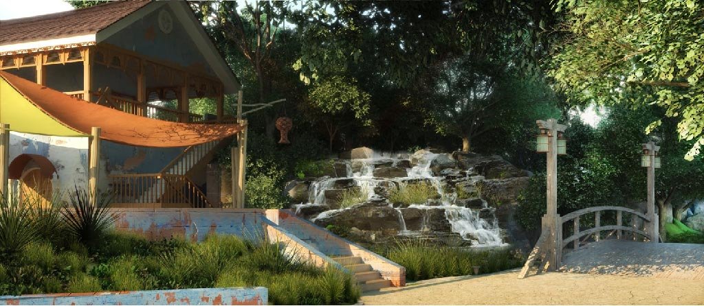 Jouzy’s design for the area development and landscaping for the park draws inspiration from the themed areas to capture the spirit of the design
